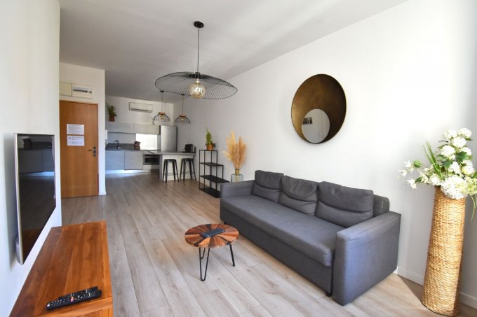 Cet appartement de 45m² est composé d'une pièce à vivre, d'une chambre (lit queen size) et d'une salle de bains indépendante. Il peut accueillir de 1 à 4 personnes (lit + canapé lit). Il est situé au 4e étage d'un immeuble Haussmannien.